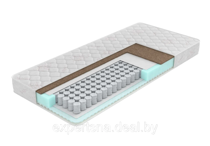 Мягкий матрас со слоями кокоса и латекса. Блок независимых пружин.