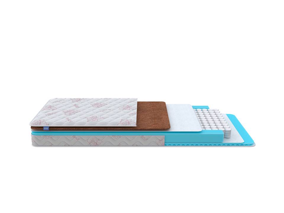 Модель имеющая конструкцию блока независимых пружин EVS-500. Предусмотрен двусторонний вариант жесткости: жесткая ( из койры кокоса) и средняя (эластичный наполнитель Ormafoam). Два варианта жесткости матраса позволяют использовать его для детей на протяжении долгого времени - от 3 до 12 лет. Более жесткая сторона с кокосовой койрой рассчитана на правильное формирование позвоночника ребенка от 3 до 6 лет. Другая сторона сторона из специально разработанной ортопедической пены Ormafoarm, при равномерном распределении давления на матрасе будет отлично поддерживать спину детей с 6 до 12 лет. съемный белый чехол