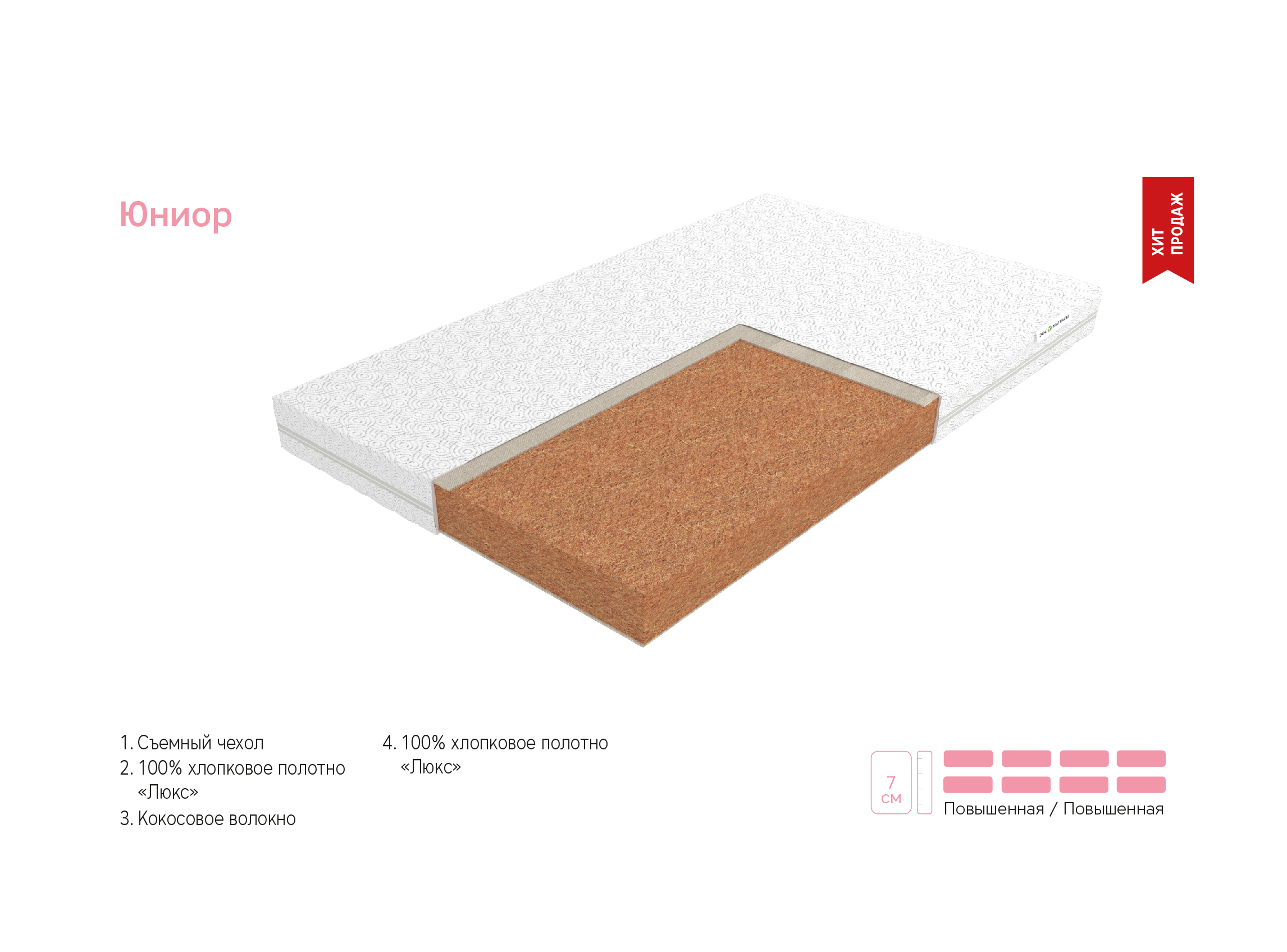 Цена указана за минимальный размер (550х1150 мм). Стоимость матраса зависит от размера и ткани чехла.