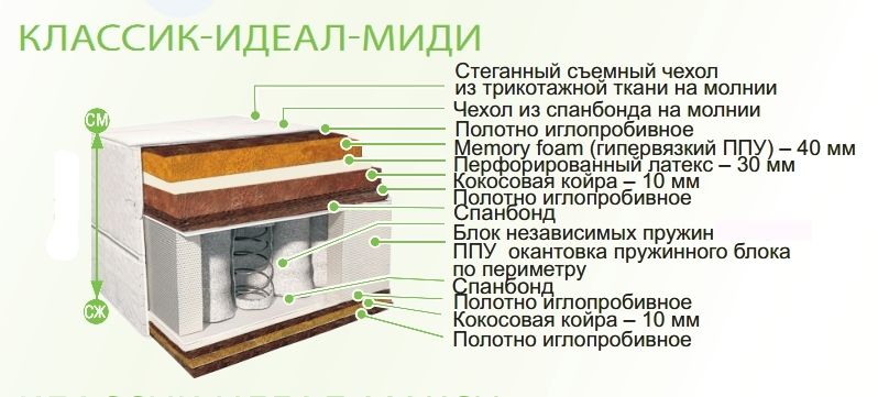 Высота матраса: 19 см. Жесткость: ниже средней.