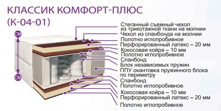 Жесткость: верх – мягкий, низ – среднежесткий. Блок независимых пружин 140 мм.