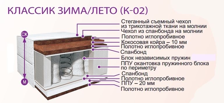 Двухсторонний матрас высотой 22 см. Слои латекса и кокоса.
