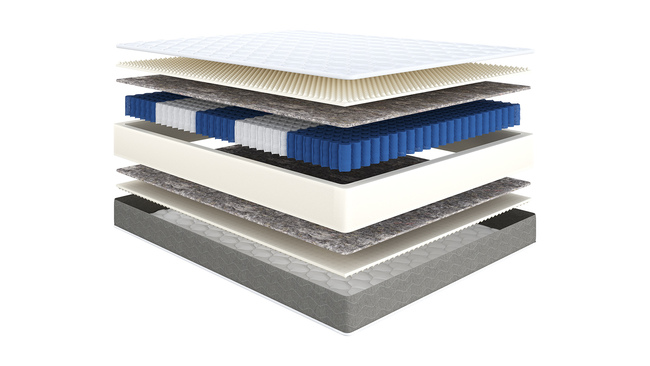 Наполнение: независимый пружинный блок, латекс, кокосовое волокно. Съемный чехол.