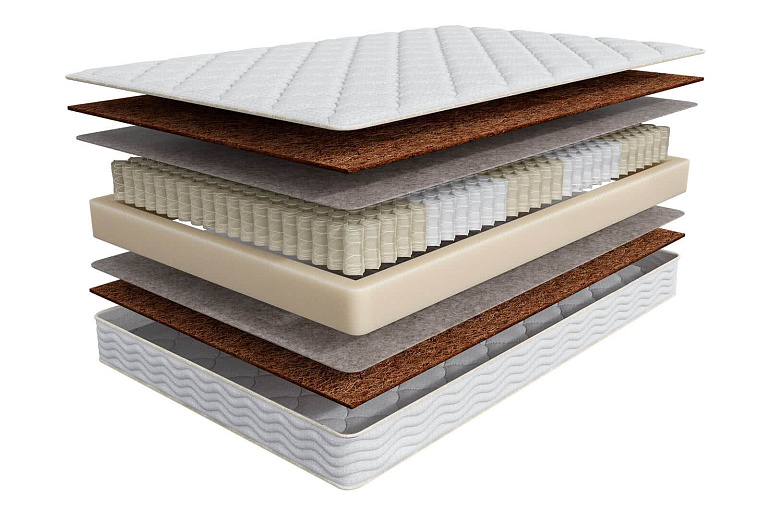 Среднежесткий матрас в съемном чехле. Блок независимых пружин и 2 кокосовые плиты.