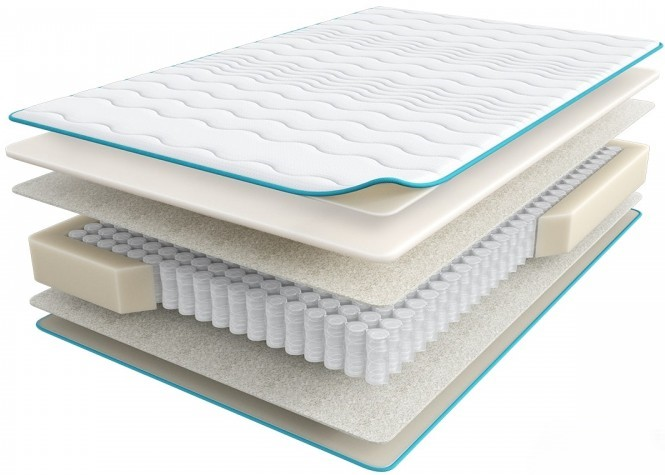 Жесткий матрас с блоком независимых пружин и кокосовым волокном.