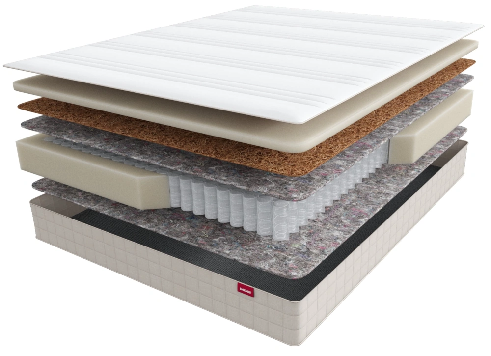 Среднежесткая модель матраса с беспружинным латексным блоком и кокосовым волокном.