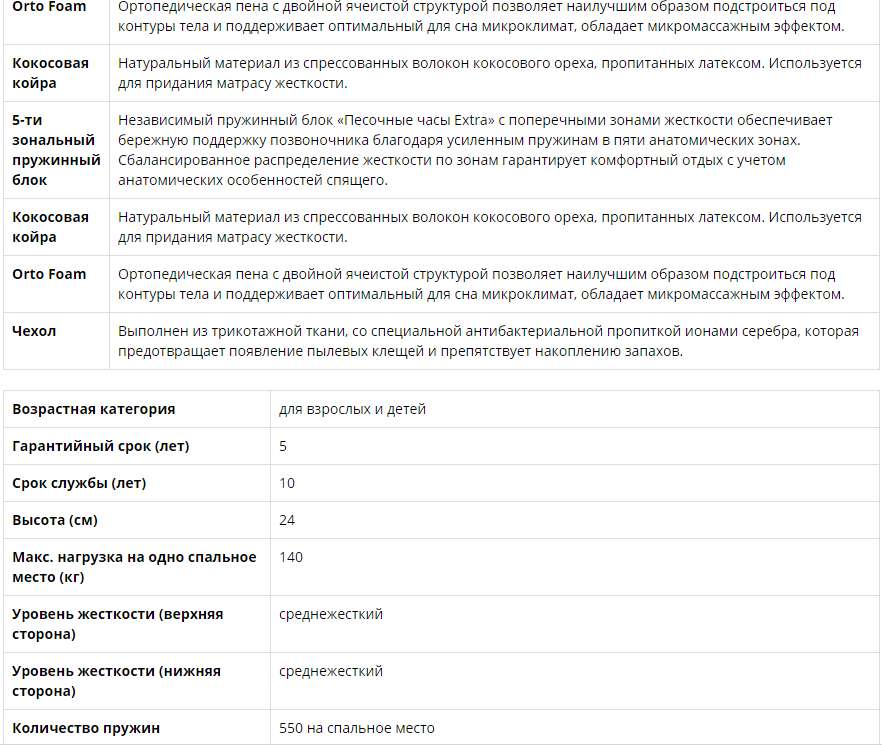 Количество пружин: 550 на спальное место
