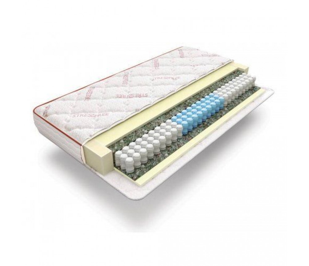Верхнее покрытие матраса изготовлено из материала трикотаж с системой комфортности Stress Free с волокнами Carbon.