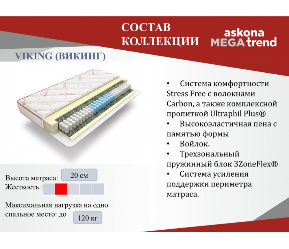 Использование в составе матраса вязкоэластичной пены с памятью формы толщиной 2 см обеспечивает матрасу анатомический эффект.