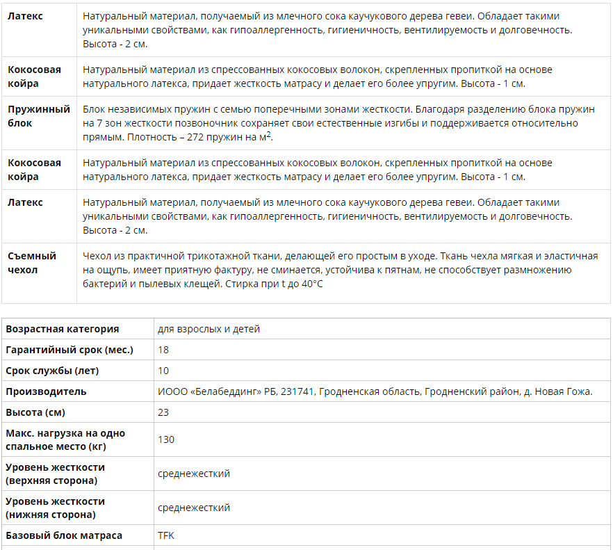 Среднежесткая модель матраса с беспружинным латексным блоком и кокосовым волокном.