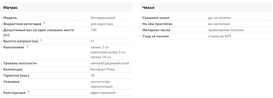 Мягкий матрас со слоями кокоса и латекса. Блок независимых пружин.