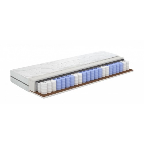 Блок независимых пружин с семью поперечными зонами жесткости. Благодаря разделению блока пружин на 7 зон жесткости позвоночник сохраняет свои естественные изгибы и поддерживается относительно прямым. Плотность – 272 пружин на м2.