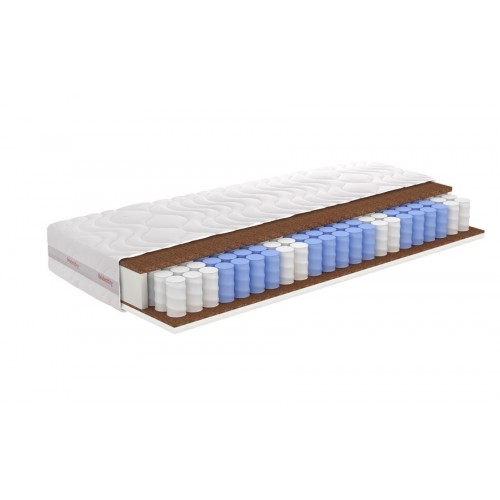Блок независимых пружин с семью поперечными зонами жесткости. Благодаря разделению блока пружин на 7 зон жесткости позвоночник сохраняет свои естественные изгибы и поддерживается относительно прямым. Плотность – 272 пружин на м2.