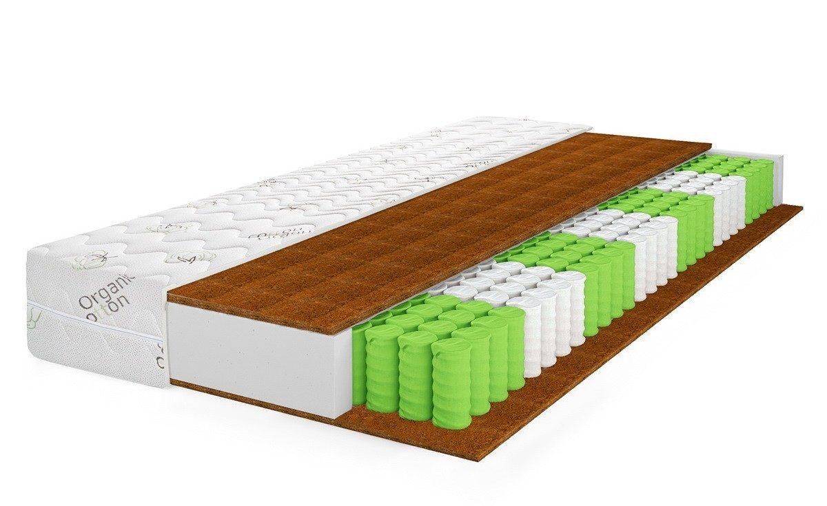 Матрас с независимым пружинным блоком, латексом и кокосовой койрой.