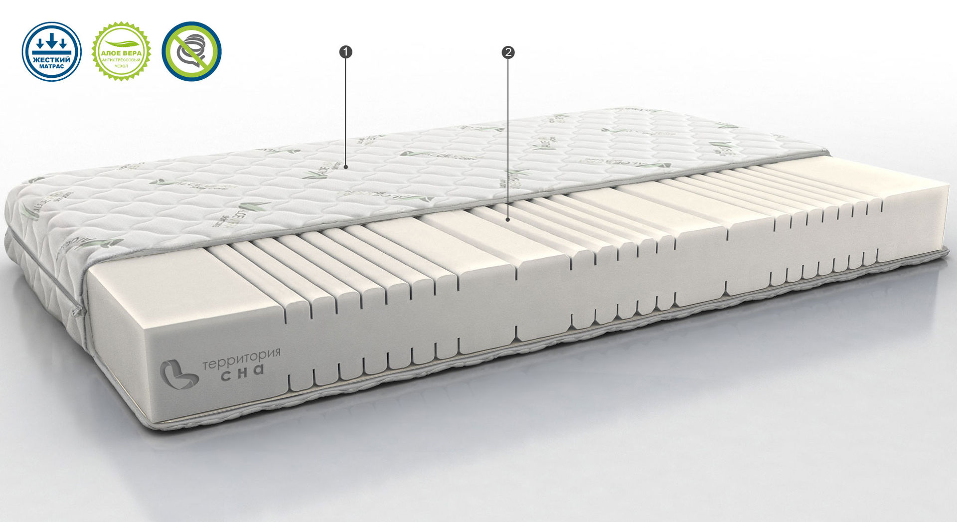 1. Чехол съемный - ткань трикотажная стеганая с добавлением экстракта Aloe Vera (65% полиэстер, 30% хлопок, 5%Aloe Vera)