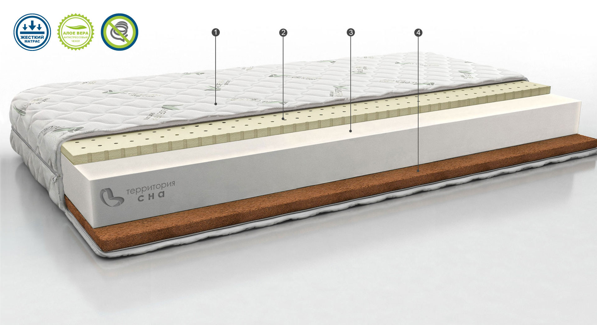 Жесткий ортопедический матрас с блоком независимых пружин и кокосом. Высота: 19 см.