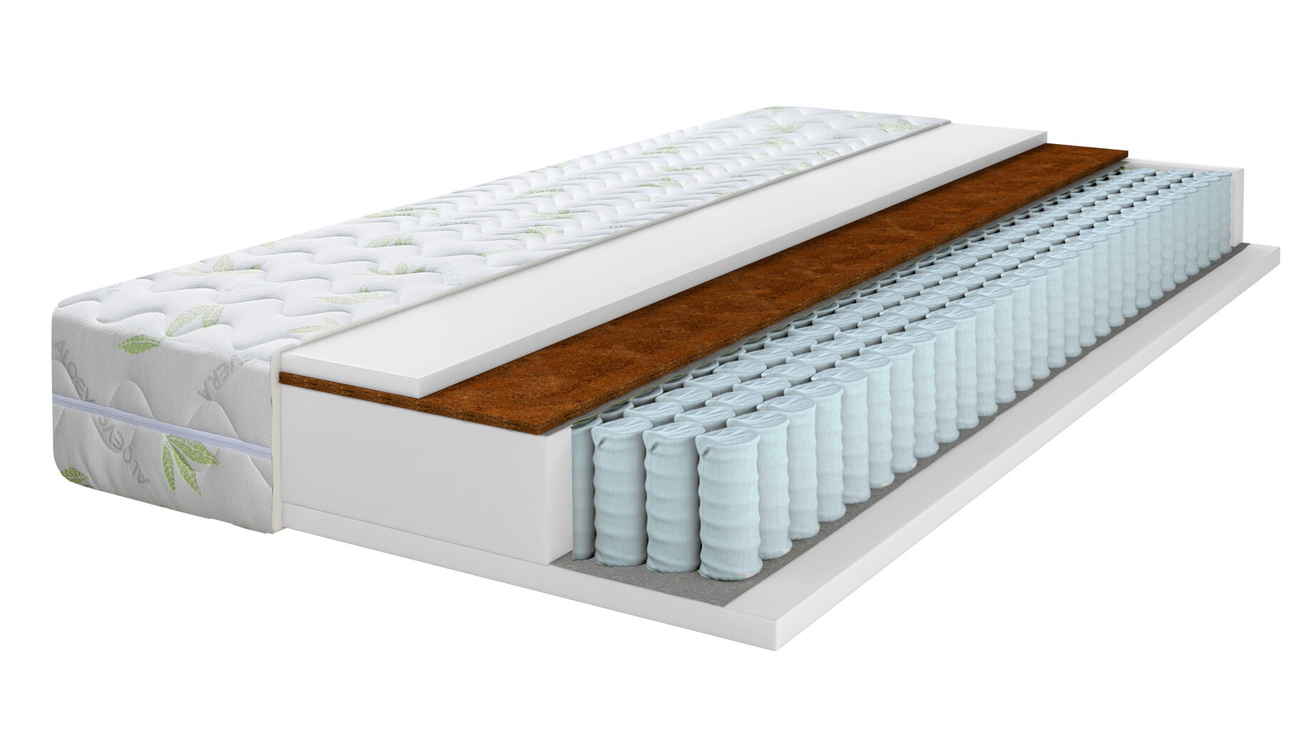 Наполнение: независимый пружинный блок, латекс, кокосовое волокно. Съемный чехол.