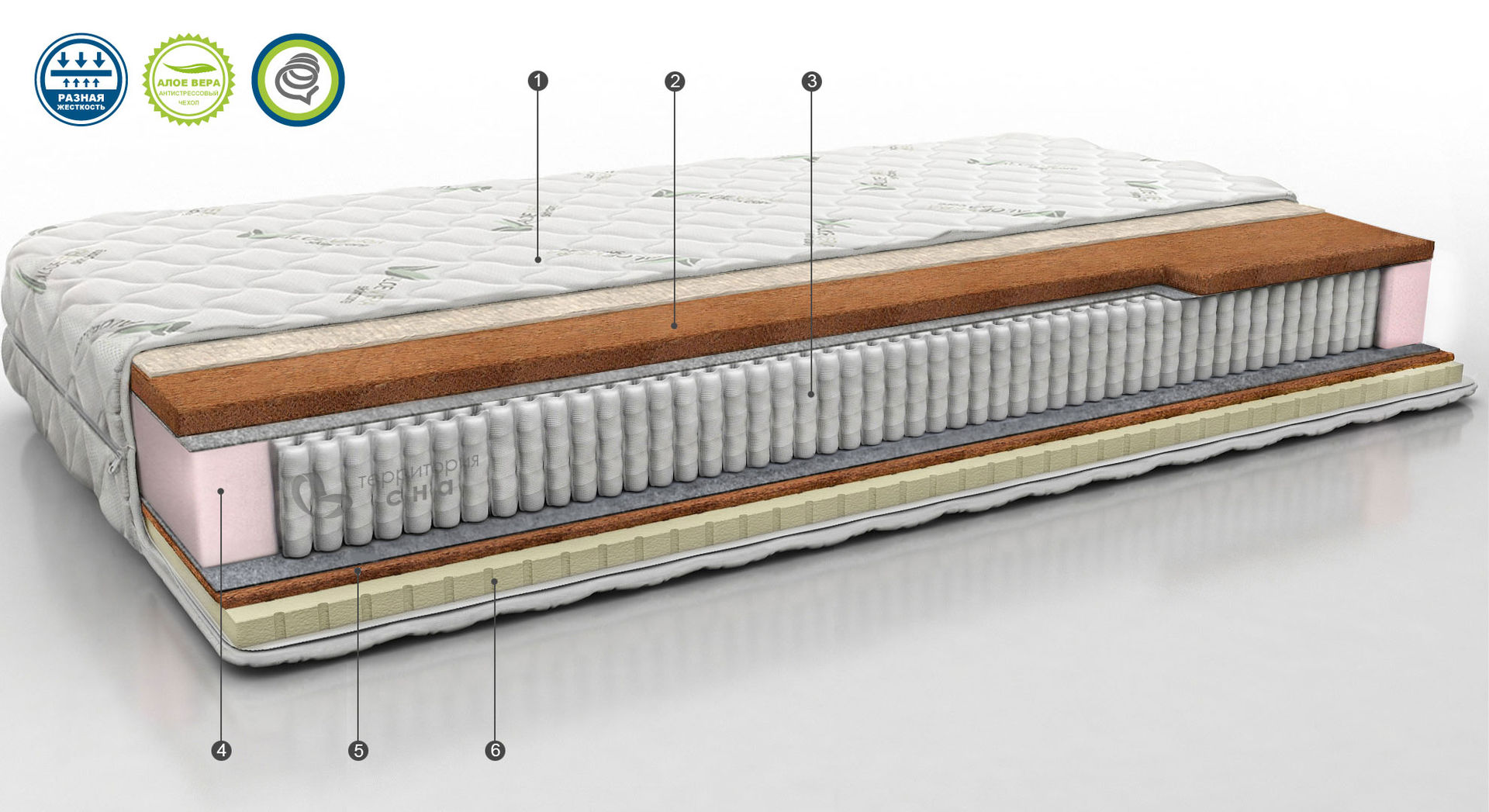 - Чехол съемный - ткань трикотажная стеганая с добавлением экстракта Aloe Vera (65% полиэстер, 30% хлопок, 5%Aloe Vera)