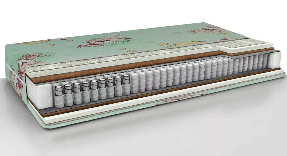 Двусторонний средне-жесткий детский матрас на основе блока независимых пружин «Pocket spring». Главным преимуществом этой модели является – гигиеничность. Поскольку он состоит из кокосовой койры, а она, совершенно не впитывает в себя запахи, ее уже длительный период времени используют в качестве основного наполнителя для детских матрасов.