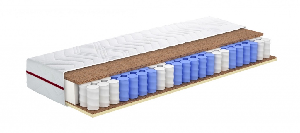 Среднежесткий матрас с независимым пружинным блоком, кокосовой койрой и термофайбером.