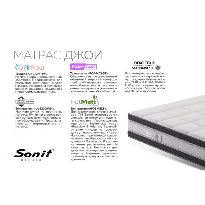 Высота матраса: 23 см. Жесткость: средняя/высокая.