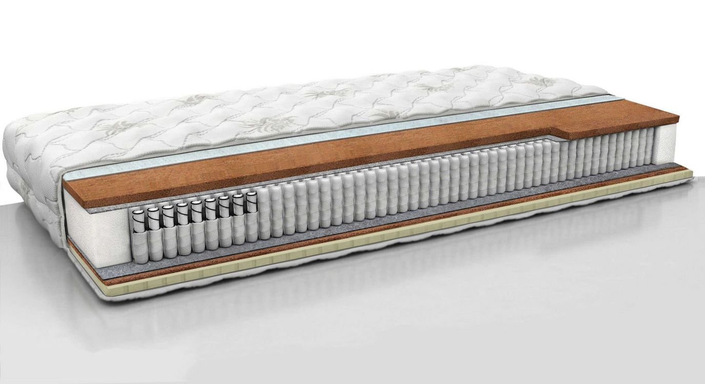 Жесткий ортопедический матрас с блоком независимых пружин и кокосом. Высота: 19 см.