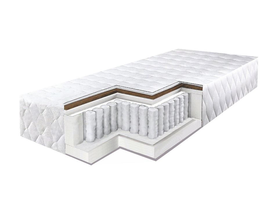 Комбинация пенополиуретана и кокосовой койры дает средне-жесткую эластичную и упругую поверхность. Наполнителем другой стороны является пенополиуретан. Он в сочетании с блоком независимых пружин создает условия для анатомически правильного положения тела.