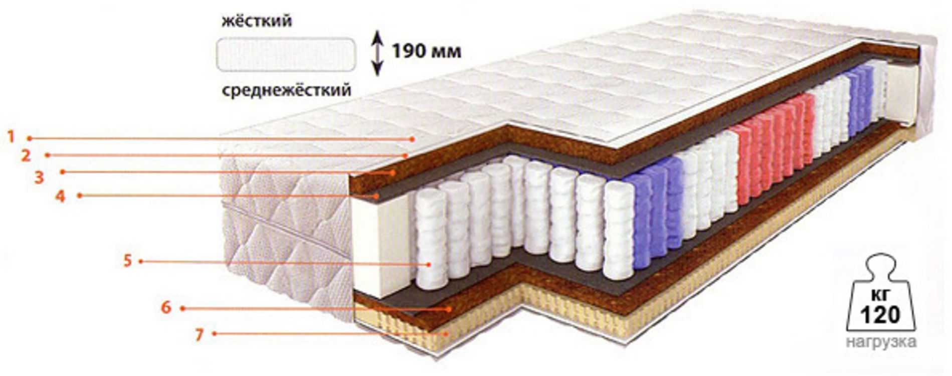 Тип пружин: независимые пружины (Pocket spring) 7-ми зональный.