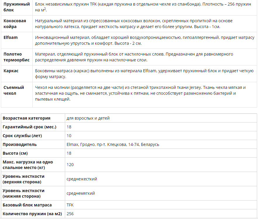 Боковины матраса (каркас) выполнены из материала Elfoam, удерживает пружинный блок и придает четкую форму матрасу.