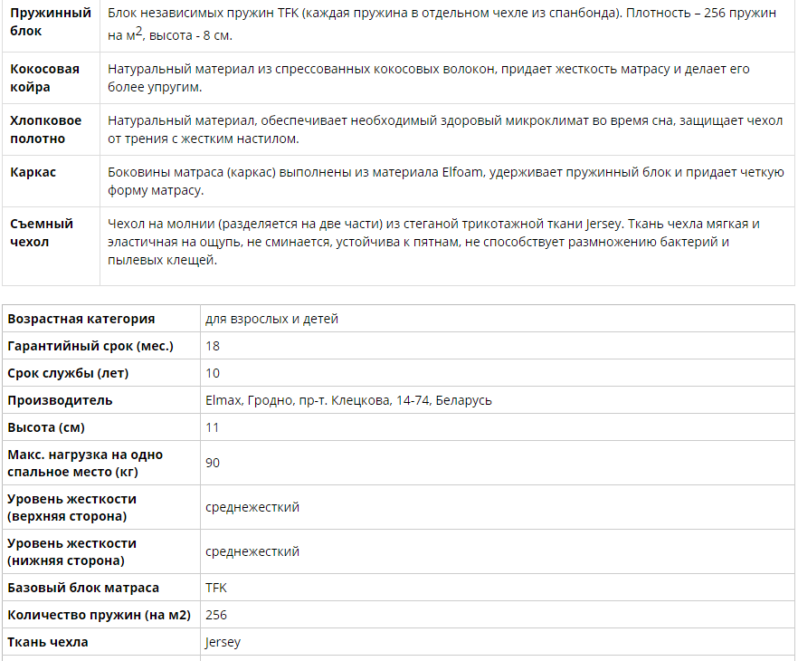 Высота матраса: 110 мм. Степень жесткости: среднежесткий / средний.