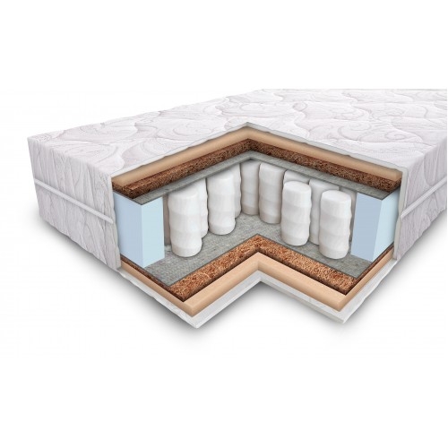 Независимый пружинный блок TFK, пружины изолированы друг от друга и расположены в виде пчелиных сот, что позволяет поддерживать правильное ортопедическое положение позвоночника и обеспечивает долгий срок службы матраса. Плотность – 300 пружин на м2.