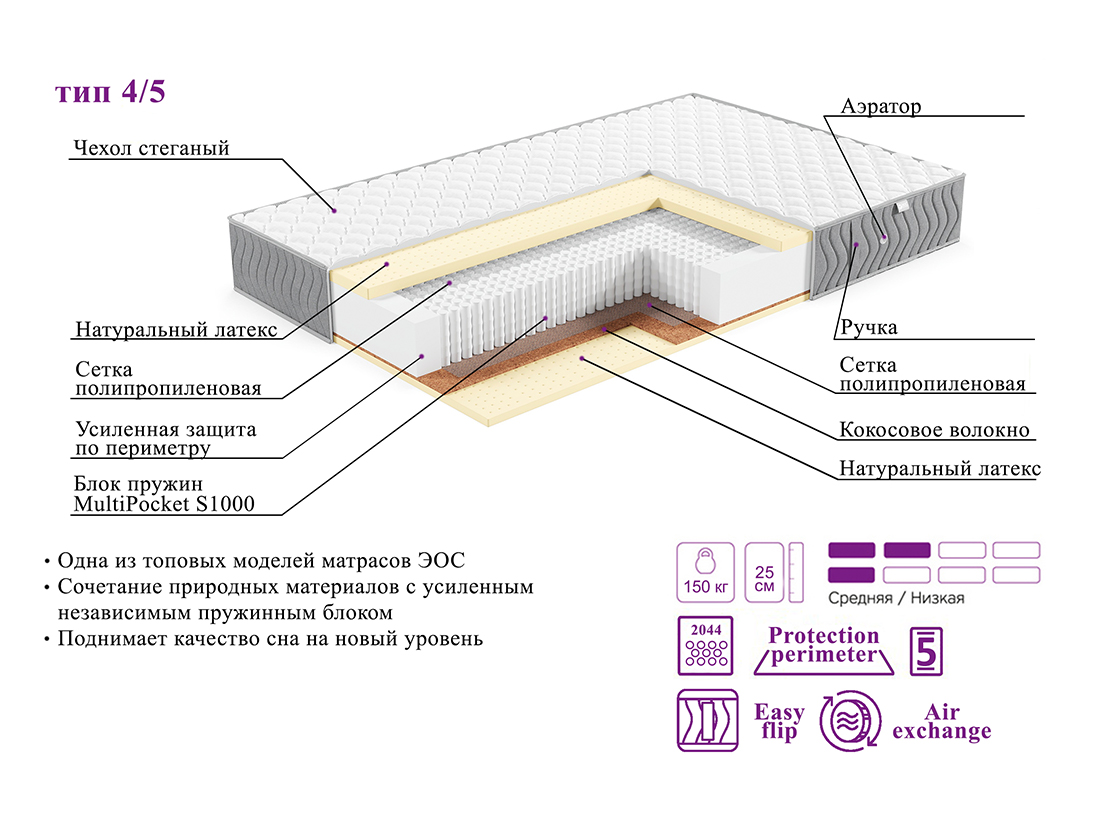 Жесткость: средне-жесткая/средняя. Высота: 250 мм.
