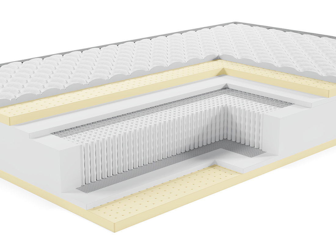 - Полипропиленовая сетка. Материал потрясающей прочности. Используется как дополнительный слой, придающий жесткость и изолирующий пружинный блок от настилочных слоев. Делает матрас ещё прочнее и долговечнее
