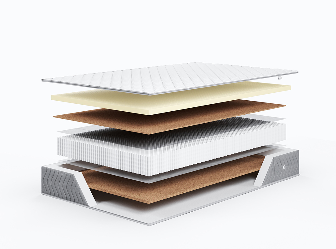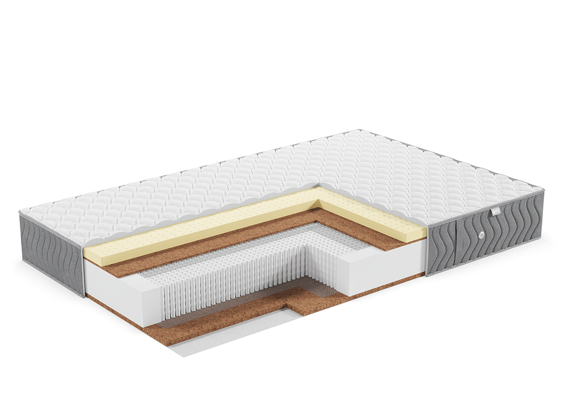 - Настилочный слой из латекса и кокосовой койры. Можно переворачивать матрас, меняя степень жесткости.