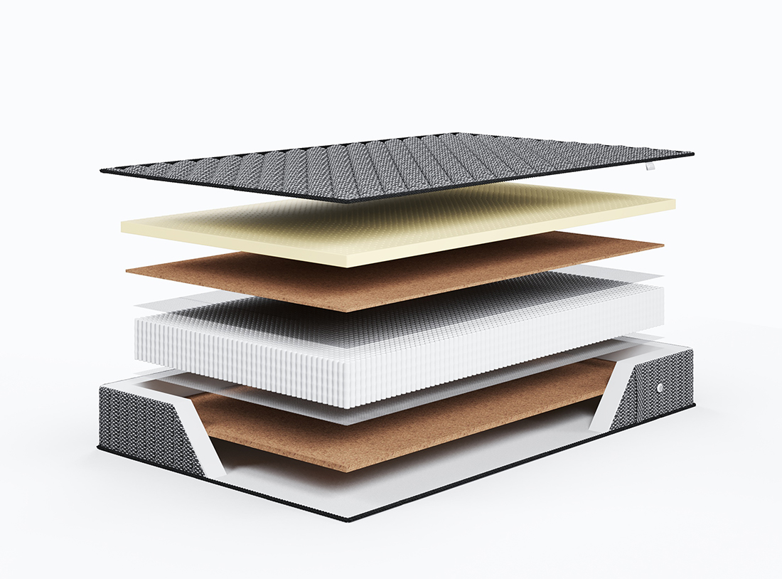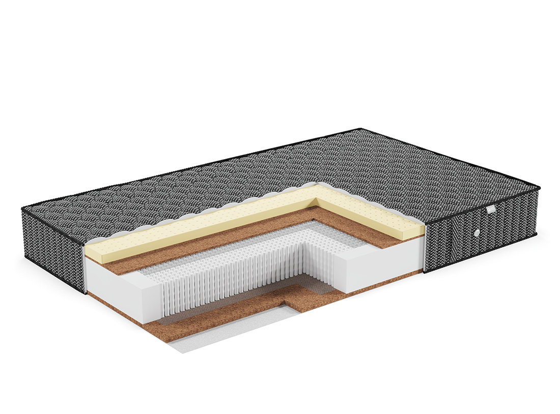 Матрас высотой 22 см со слоями латекса, кокоса и блоком независимых пружин.