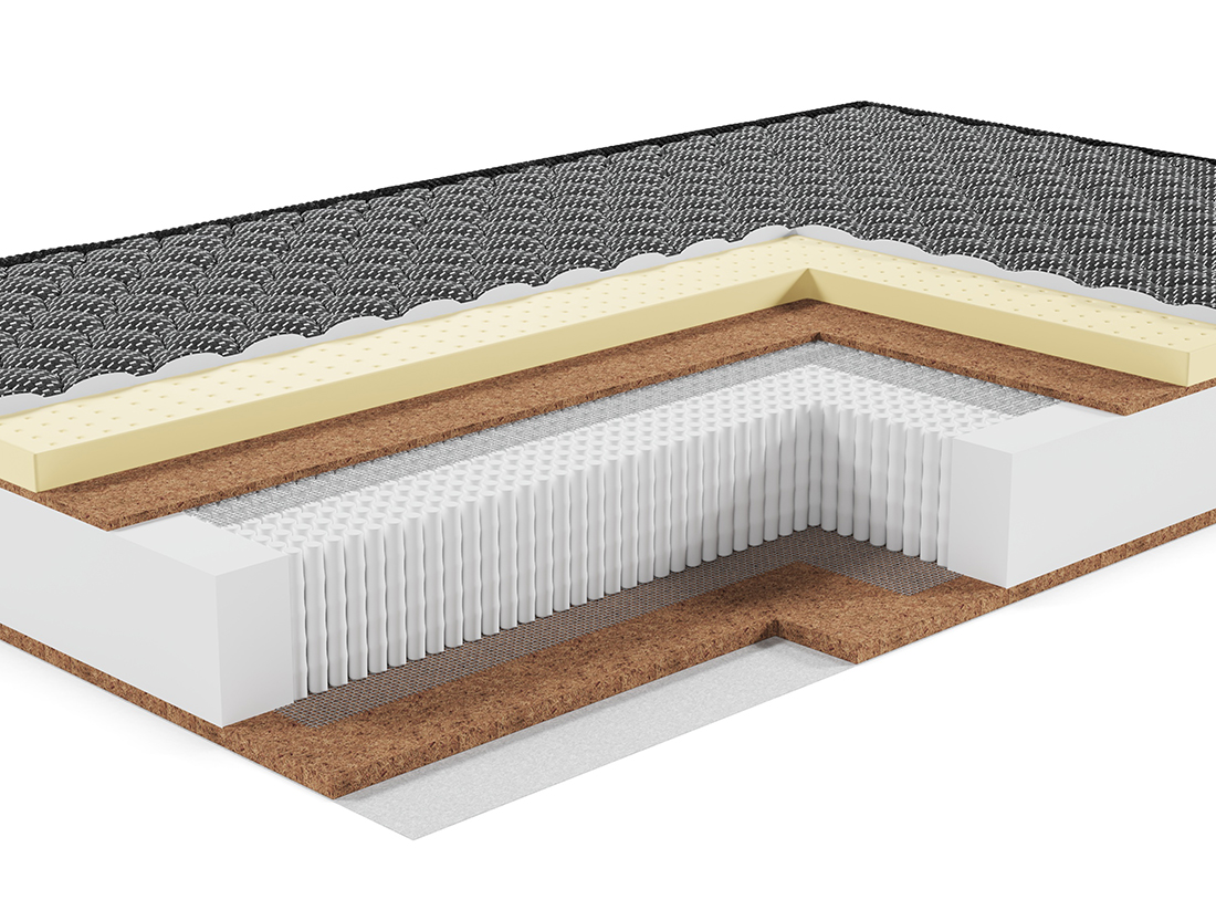 - Полипропиленовая сетка. Материал потрясающей прочности. Используется как дополнительный слой, придающий жесткость и изолирующий пружинный блок от настилочных слоев. Делает матрас ещё прочнее и долговечнее
