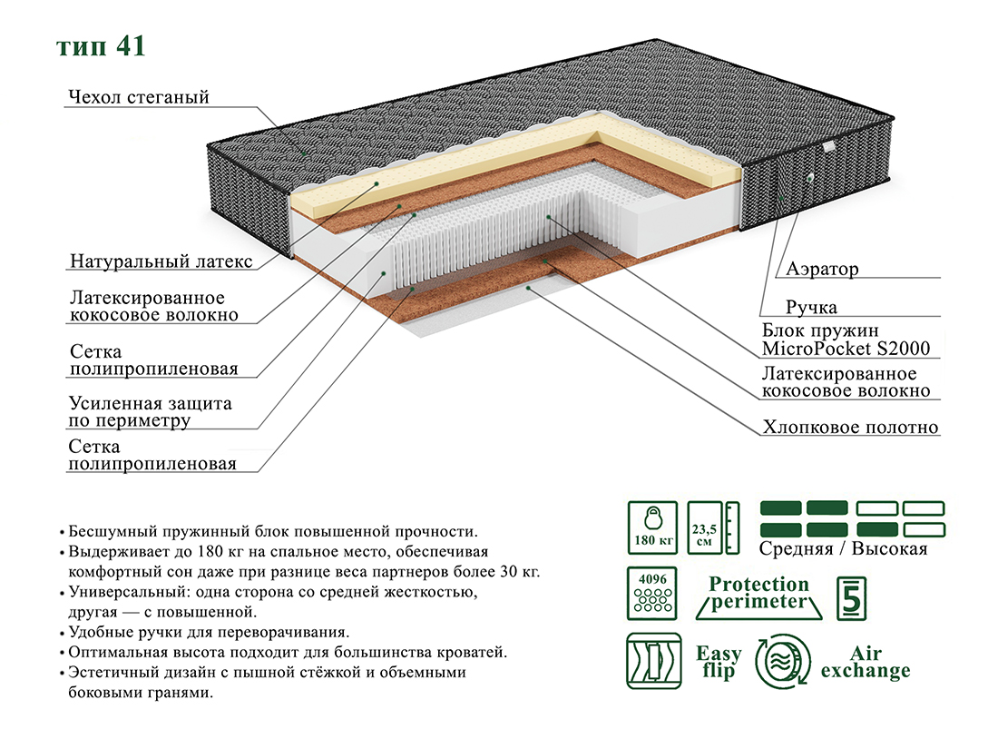 Высота: 200 мм. Жесткость: средний/среднемягкий.