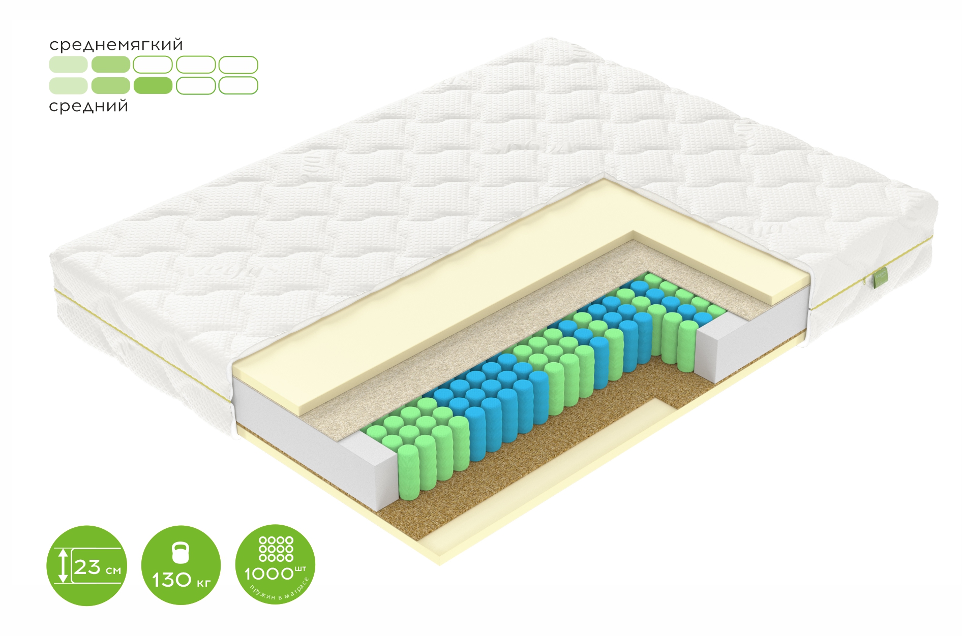 Высота: 200 мм. Жесткость: средне-мягкий / средне-жесткий.