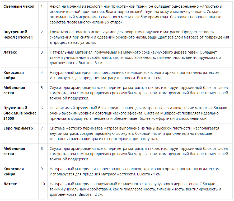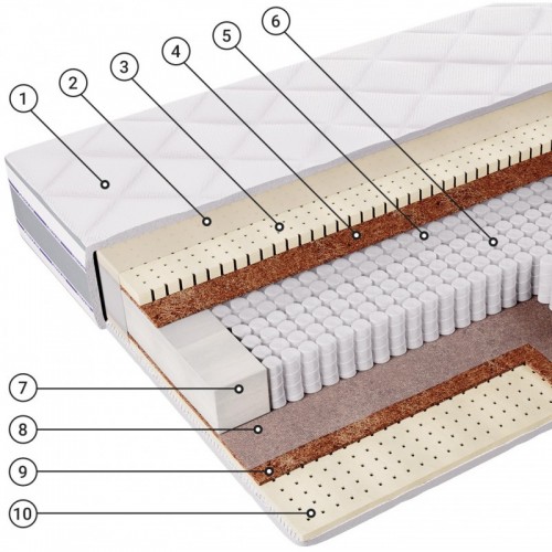 Натуральный материал из спрессованных волокон кокосового ореха, пропитанных латексом. Используется для придания матрасу жесткости. Высота - 1 см.