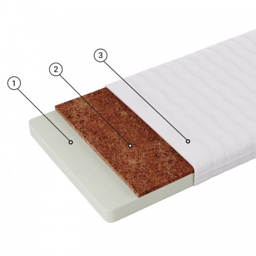 Натуральный материал из спрессованных кокосовых волокон, скрепленных пропиткой на основе натурального латекса, придает жесткость матрасу и делает его более упругим. Высота - 2 см.