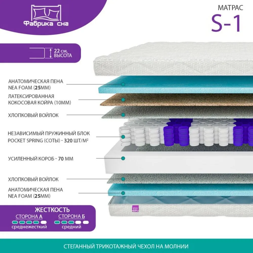 Ортопедический матрас S-1 с двумя сторонами жесткости - отличное сочетание хорошего качества по доступной цене.