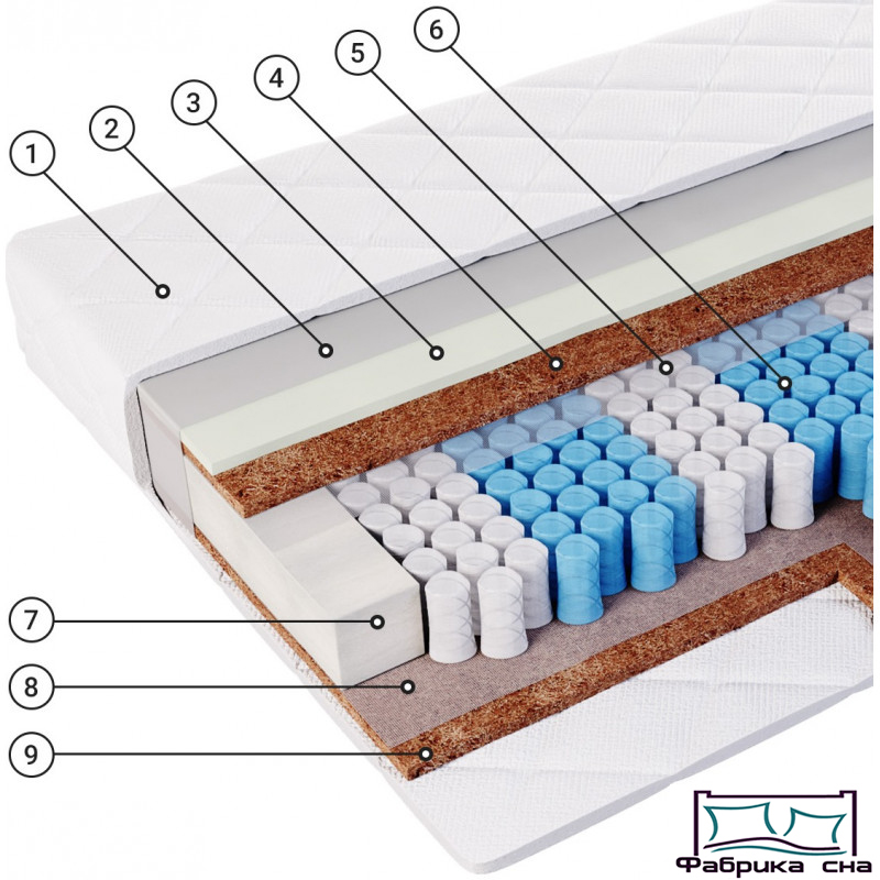 ⑥ Пружинный блок Pocket Spring - 7 зон жесткости шахматной сборки, 14 см