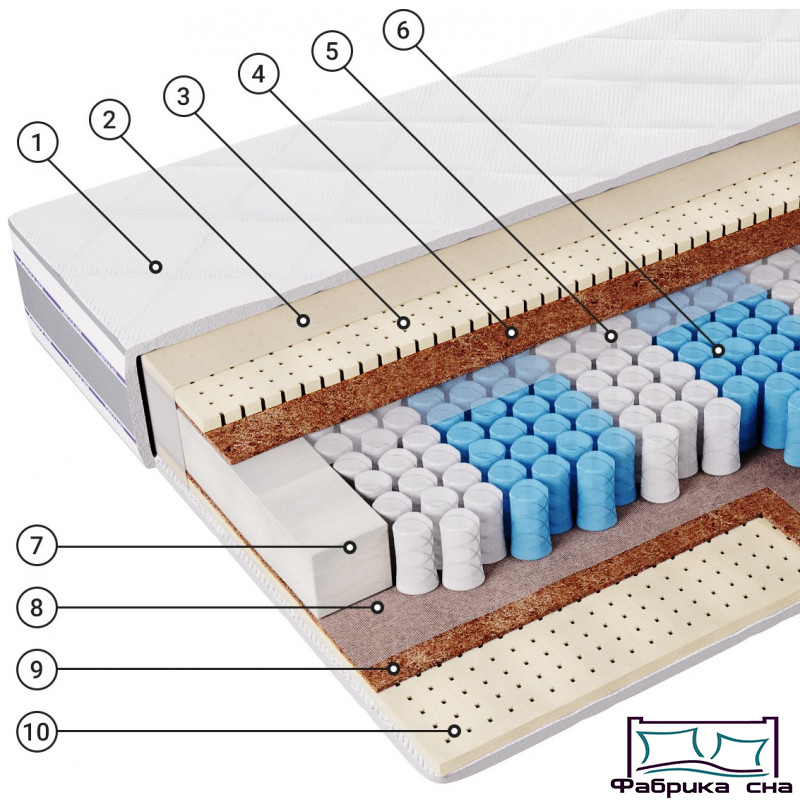 Наполнение: блок независимых пружин 140 мм, кокосовая койра и латекс. Высота: 21 см.