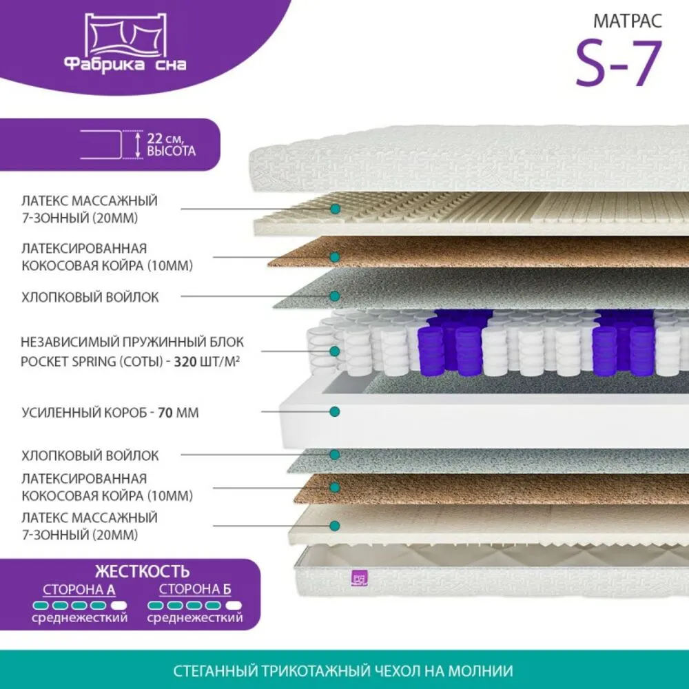 Среднежесткий матрас высотой 21 см. Независимый пружинный блок.