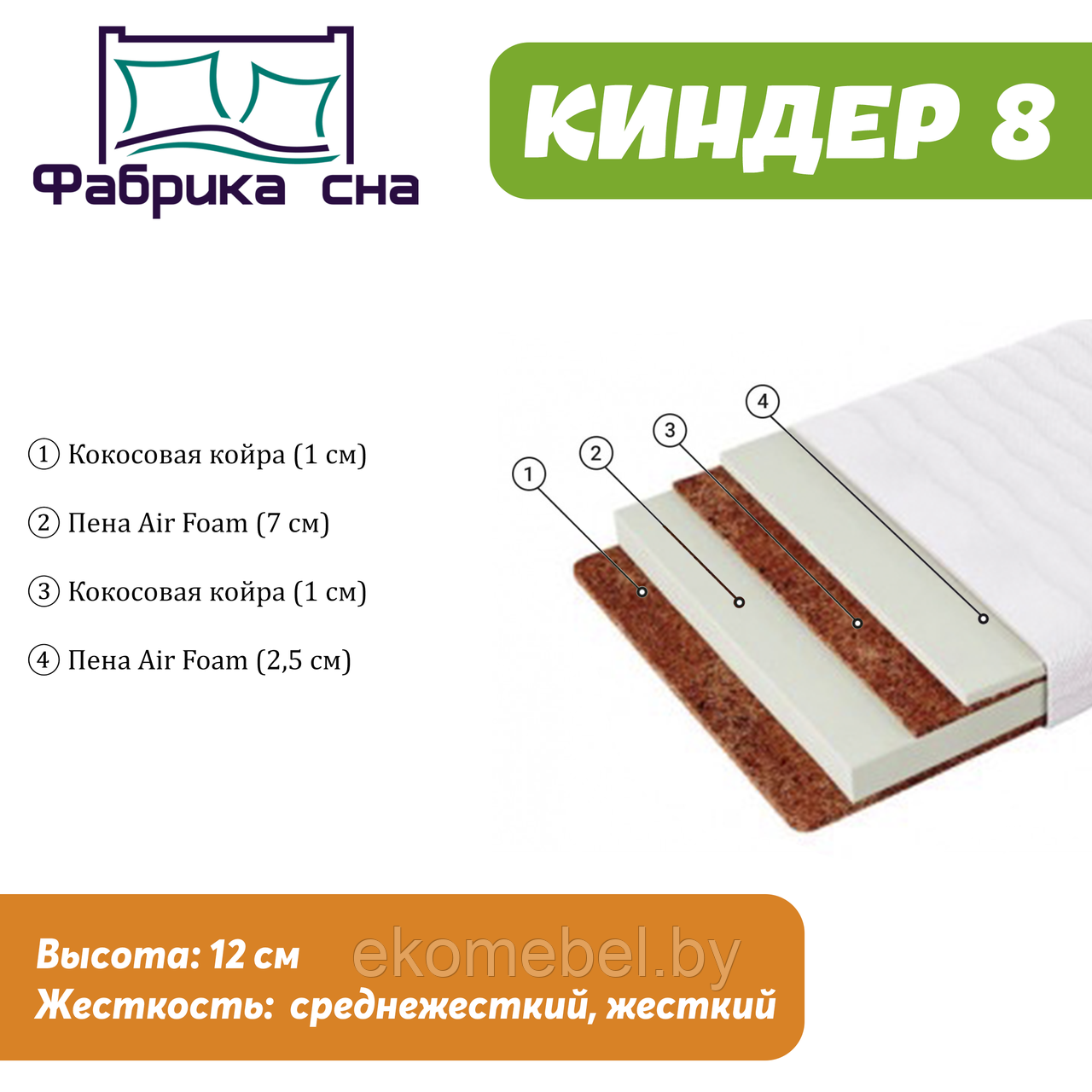 Беспружинный матрас "Киндер 8" высотой 12 см состоит из следующих материалов: