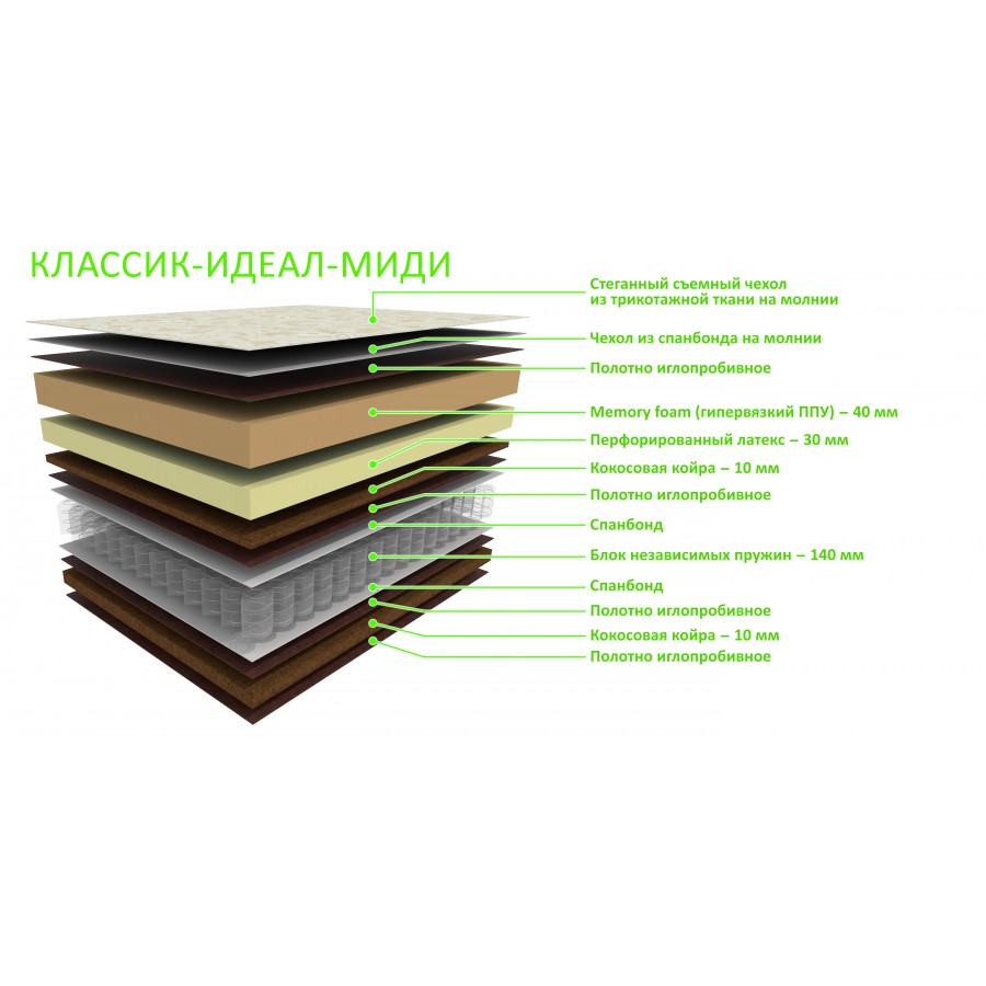 4) Memory foam (гипервязкий ППУ) - 40 мм.