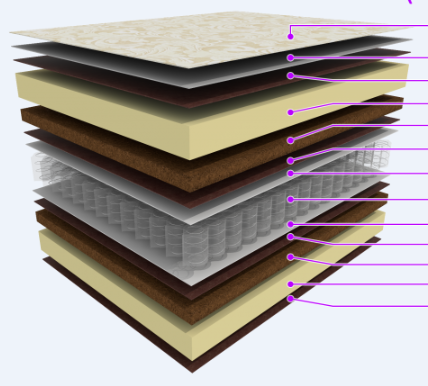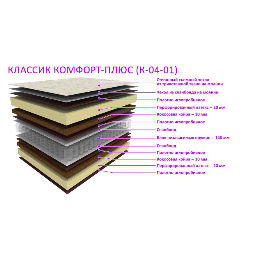 Средняя жесткость. Слои кокоса и латекса, блок независимых пружин 140 мм.