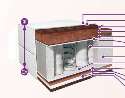 Матрас двусторонний с разной жесткостью верхней и нижней сторон.