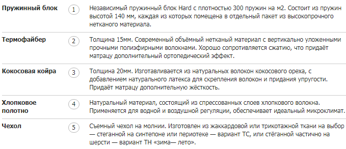 Жесткость: верх – мягкий, низ – среднежесткий. Блок независимых пружин 140 мм.