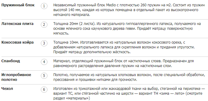 Базовый блок матраса: Medio